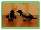 Птицы - наиболее редко встречающиеся игрушки, кроме курочки и цыпленка. Не исключением являются и представленные варианты. Но даже столь малые находки могут быть по достоинству оценены любителями вязаных игрушек.