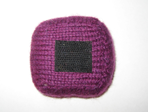 Затем с одной стороны в центре пришить квадрат липкой ленты (та ее часть, которая с крючками).