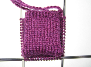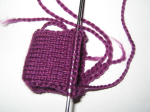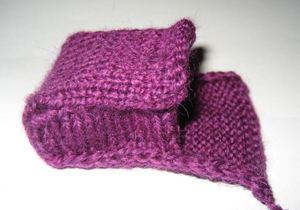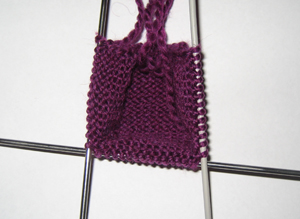 Затем продолжаем вязать на оставшейся средней спице еще 9 рядов, предварительно в первом ряду прибавив по 1 петле с обоих краев. Петли по краям и лишний ряд нужны для выполнения швов.